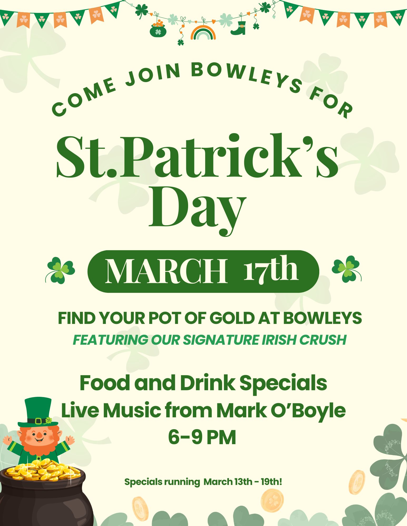 Join us on Tuesday, March 17th for the ultimate St. Patrick’s Day party We’ve got Mark O’Boyle performing live from 6–9 PM, plenty of beer, and the best waterfront vibes in town!