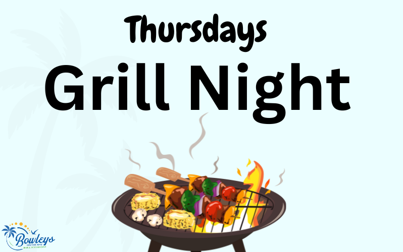 Enjoy Grill Night at Bowleys! Long Beach Burgers, Creole Kebabs, and Grilled Pineapple are just some of the yummy menu items you’re expected to see! Come in for a tasty meal with a waterfront view you cant beat!
